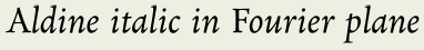 Given the vertical offset of the peak in pixels, the actual wavelength in pixels can be calculated as the quotient of the height of the image and the offset; for the main vertical wave we have 2490/33 = 75.5±2.5pix between maximums. In real terms, dividing by 18.95±0.05 dpmm resolution, we get a 4.0±0.1mm wavelength (distance between maxima). As you will see below, this wave corresponds to the vertical line period and its length is equal to the aldine classics line increment measured by Peter Burnhill (figure 35 in Type Spaces). The remaining points of interest are not peaks of high intensity, but rather centers of hills, responsible for many diagonal waves of close frequencies and orientation. These centers are marked df1, df2, and df3 (since the FFT image is symmetrical, the same points are present below the center). Here are the positions of the centers and their offsets from the center point: